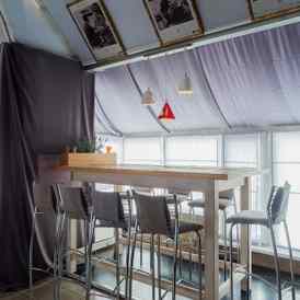У ресторана есть светлая и уютная летняя терраса с видом на Свислочь. Терраса располагает проектором, что делает ее подходящим местом для презентаций или праздников. Сам ресторан также может стать площадкой для большого торжества – на 120 персон в случае банкета и на 180 – при заказе фуршета. В заведении есть сцена и собственная звуковая аппаратура.
